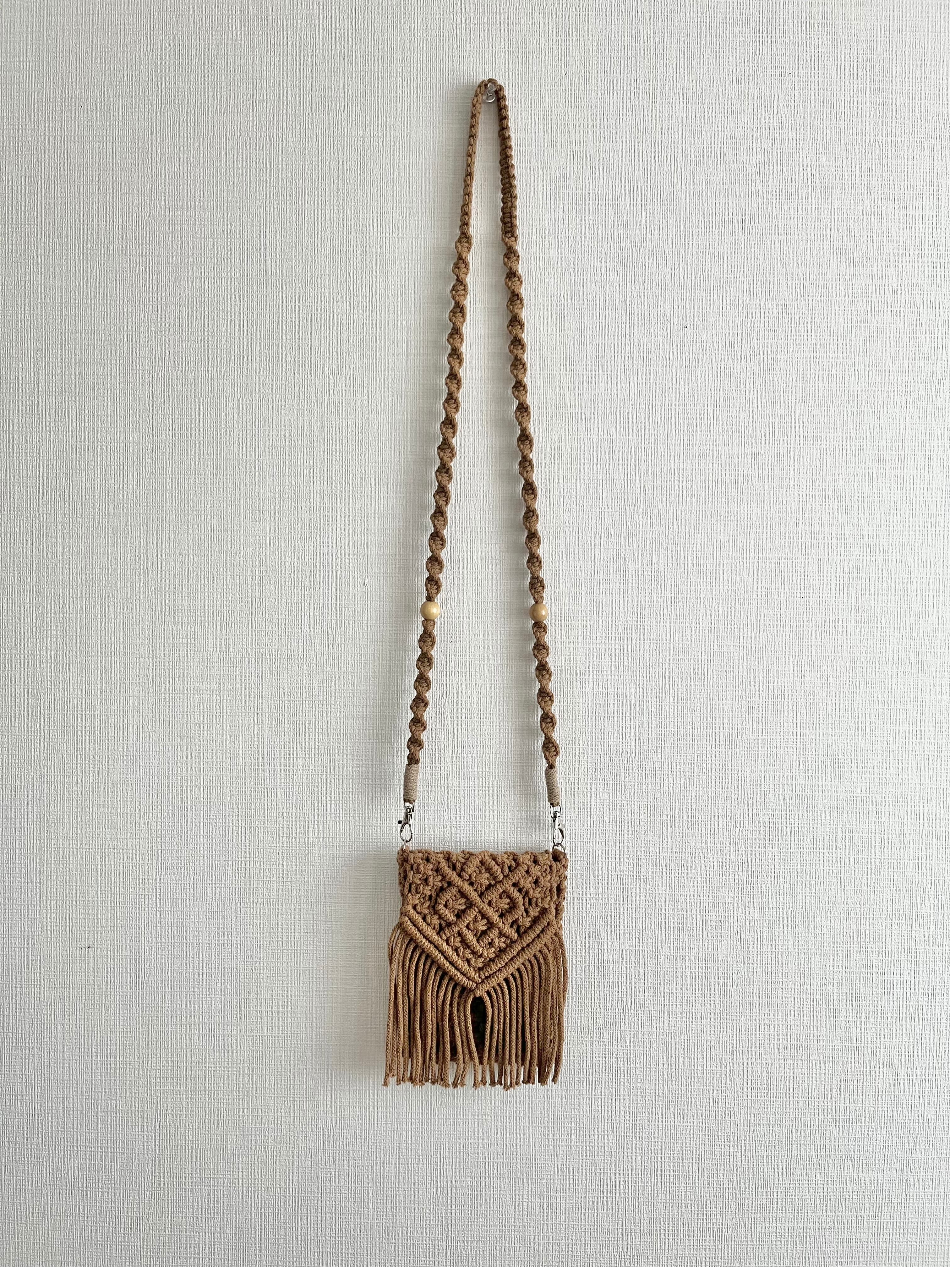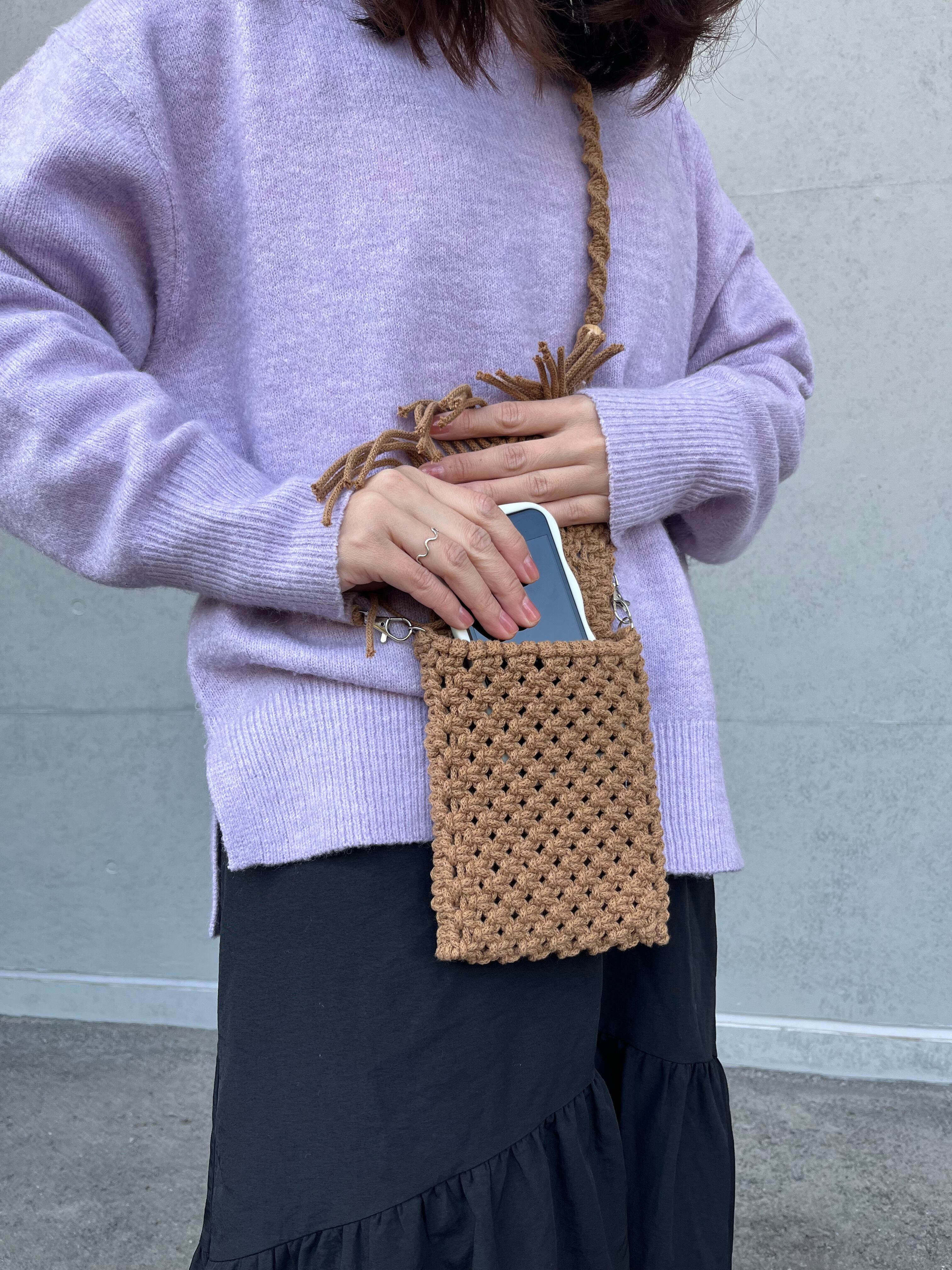 キャラメルカラーのスマホポシェット。