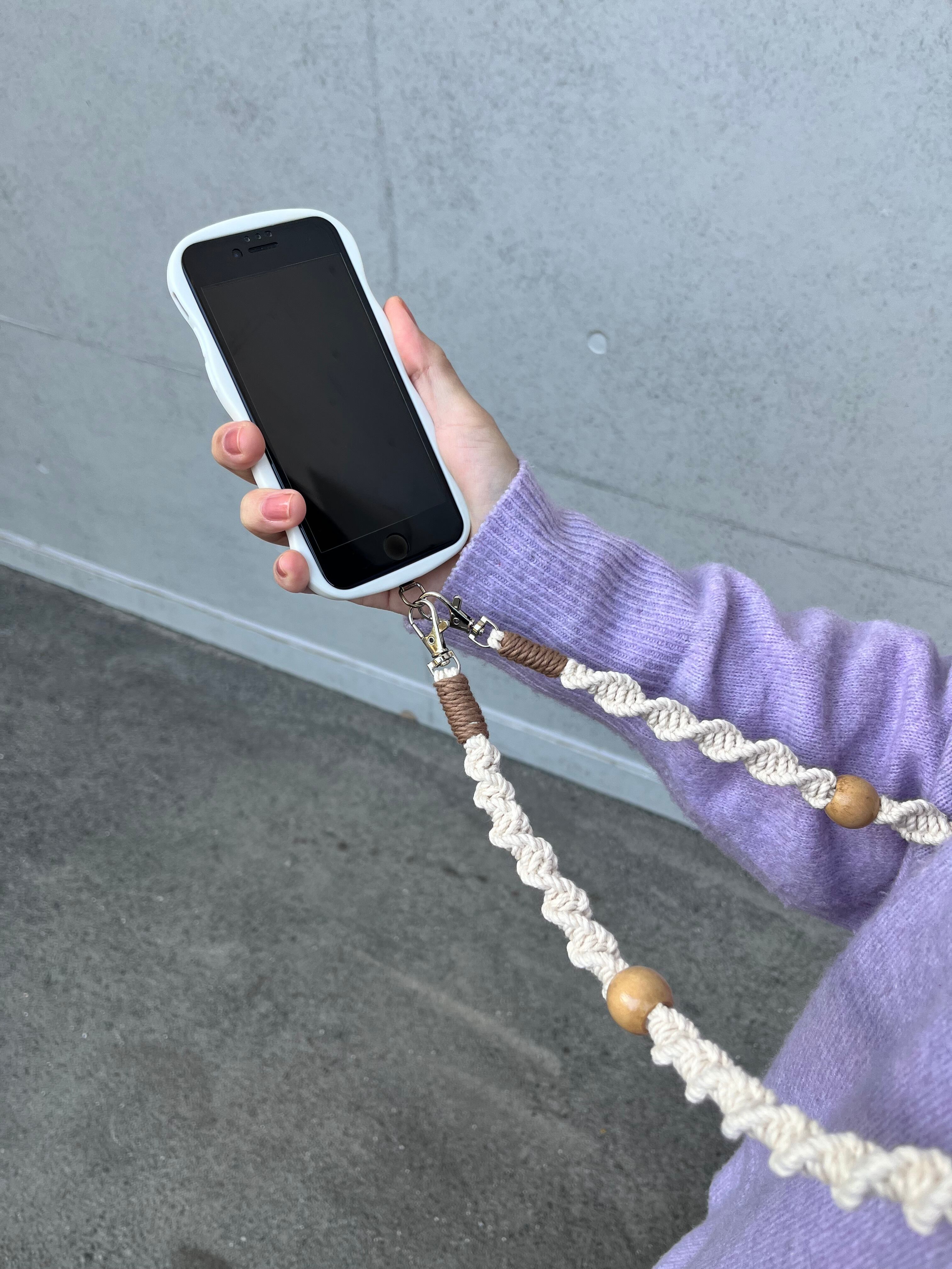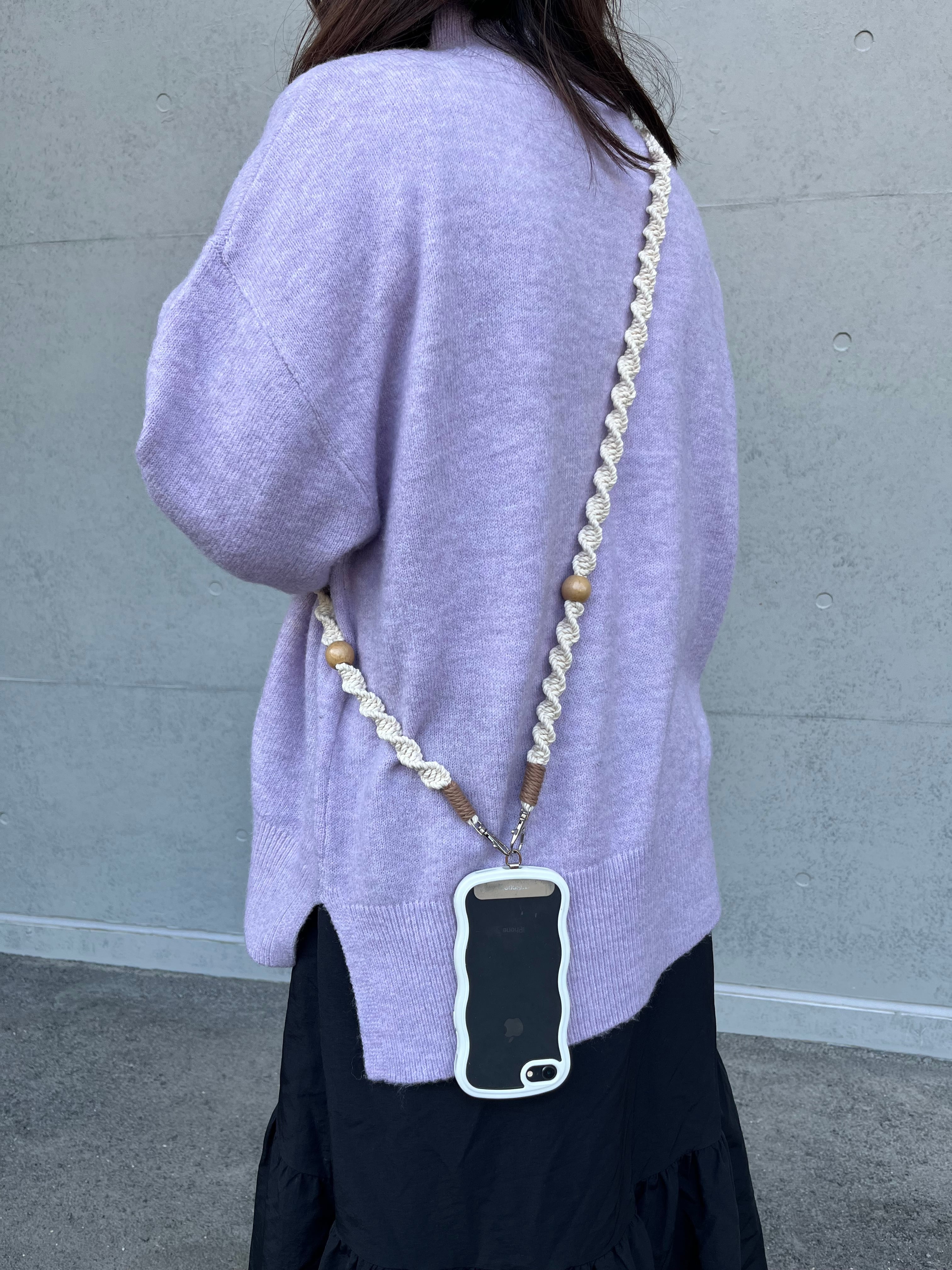 丁寧に時間をかけて編み上げた、スマホショルダーです。