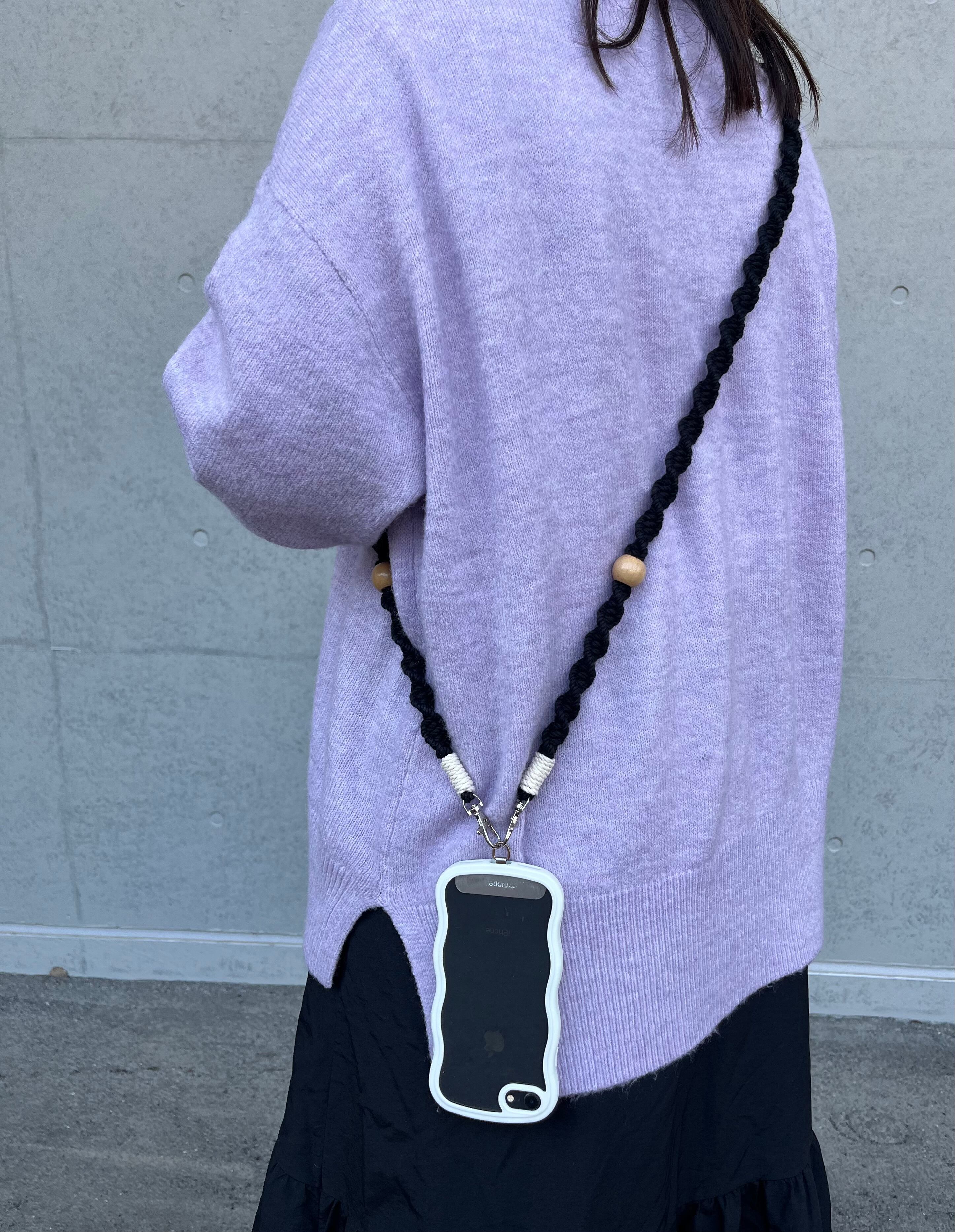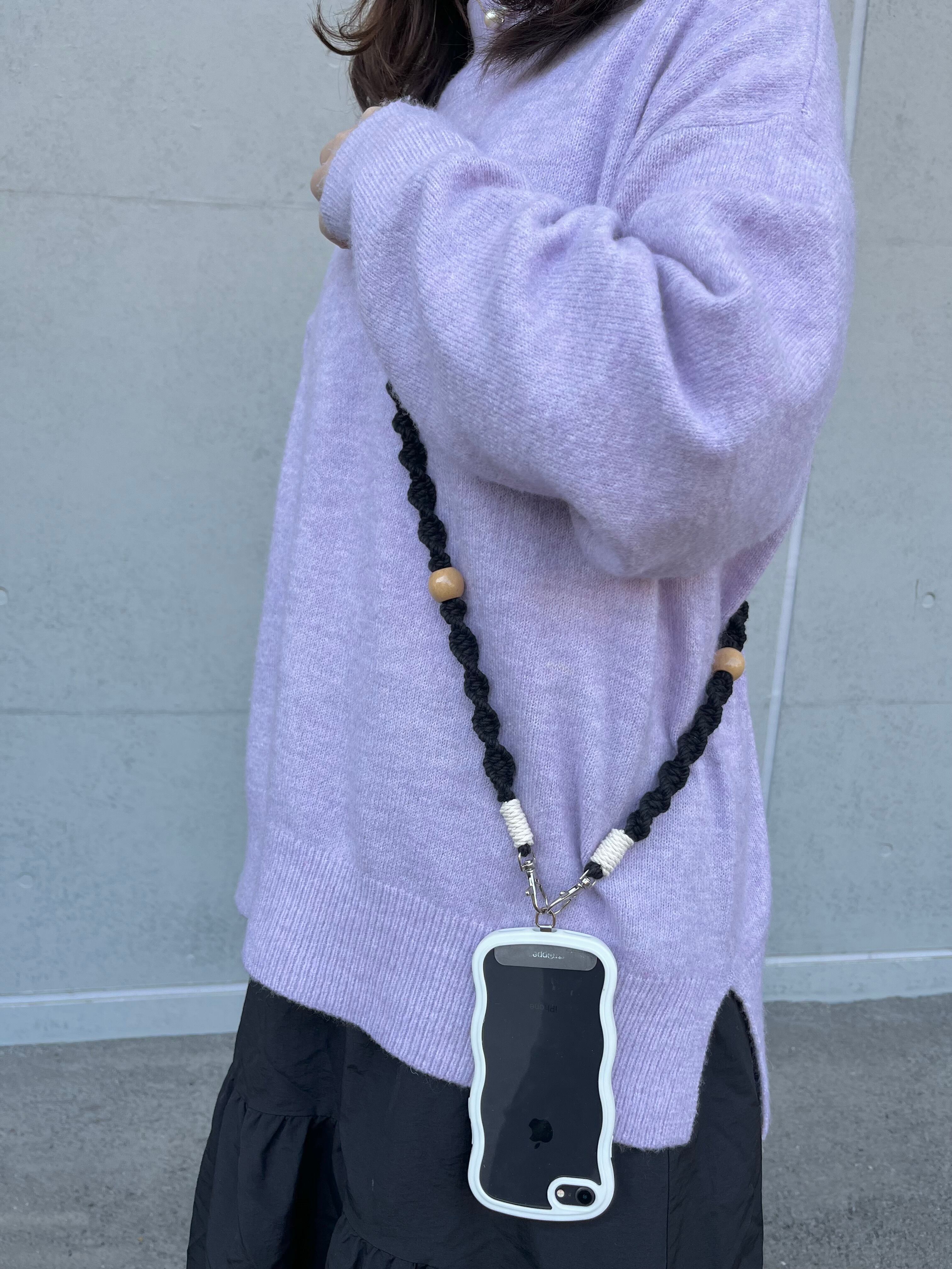 丁寧に時間をかけて編み上げた、スマホショルダーです。